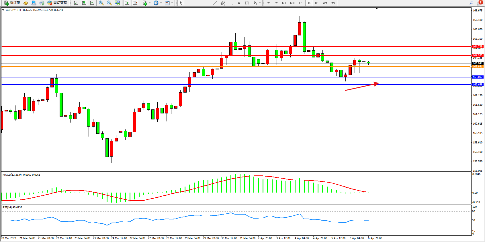 交易策略:163.661下方看跌,目标163.097  162.698