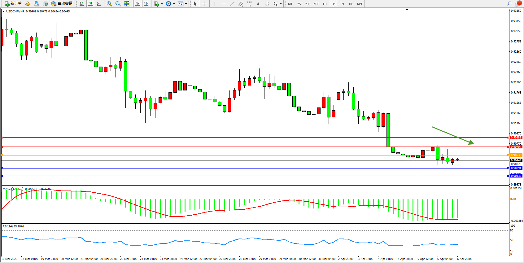 美元瑞郎USDCHF——4小时K线图显示: