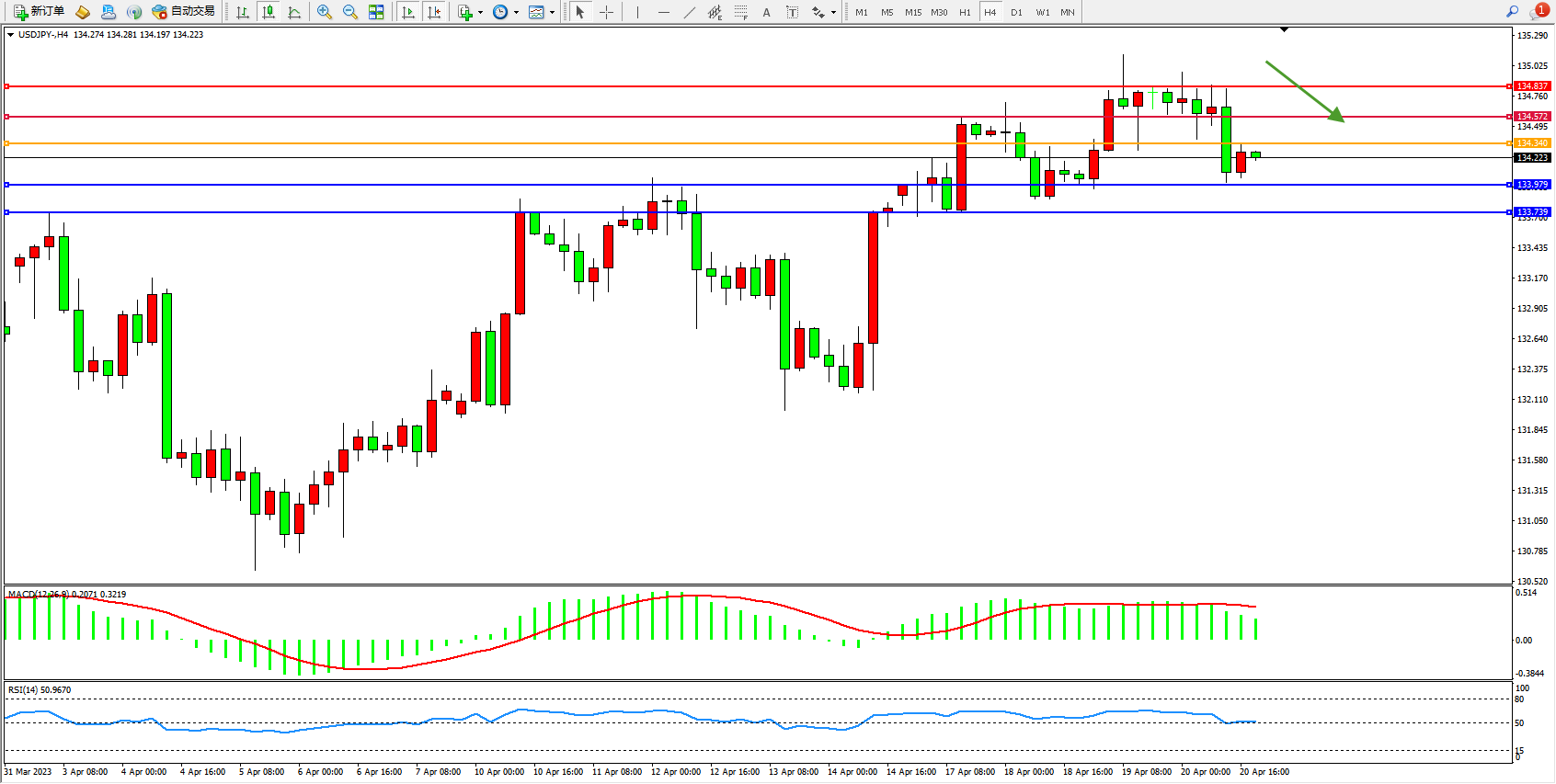 阻力位:134.572  134.837