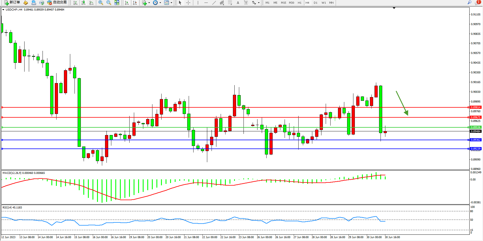 美元瑞郎USDCHF——4小时K线图显示: