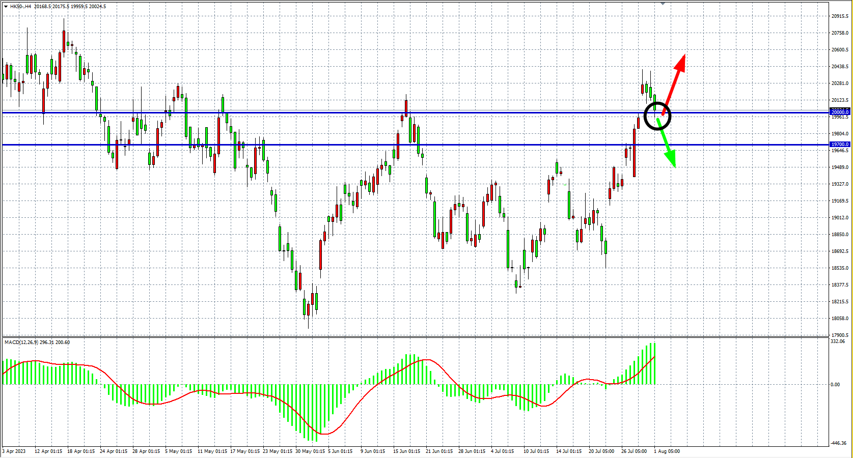 交易策略:20000    上方看涨,目标 20500  20800