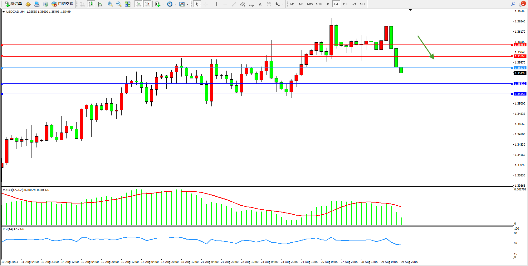 交易策略:1.35578下方看跌,目标1.35320  1.35153