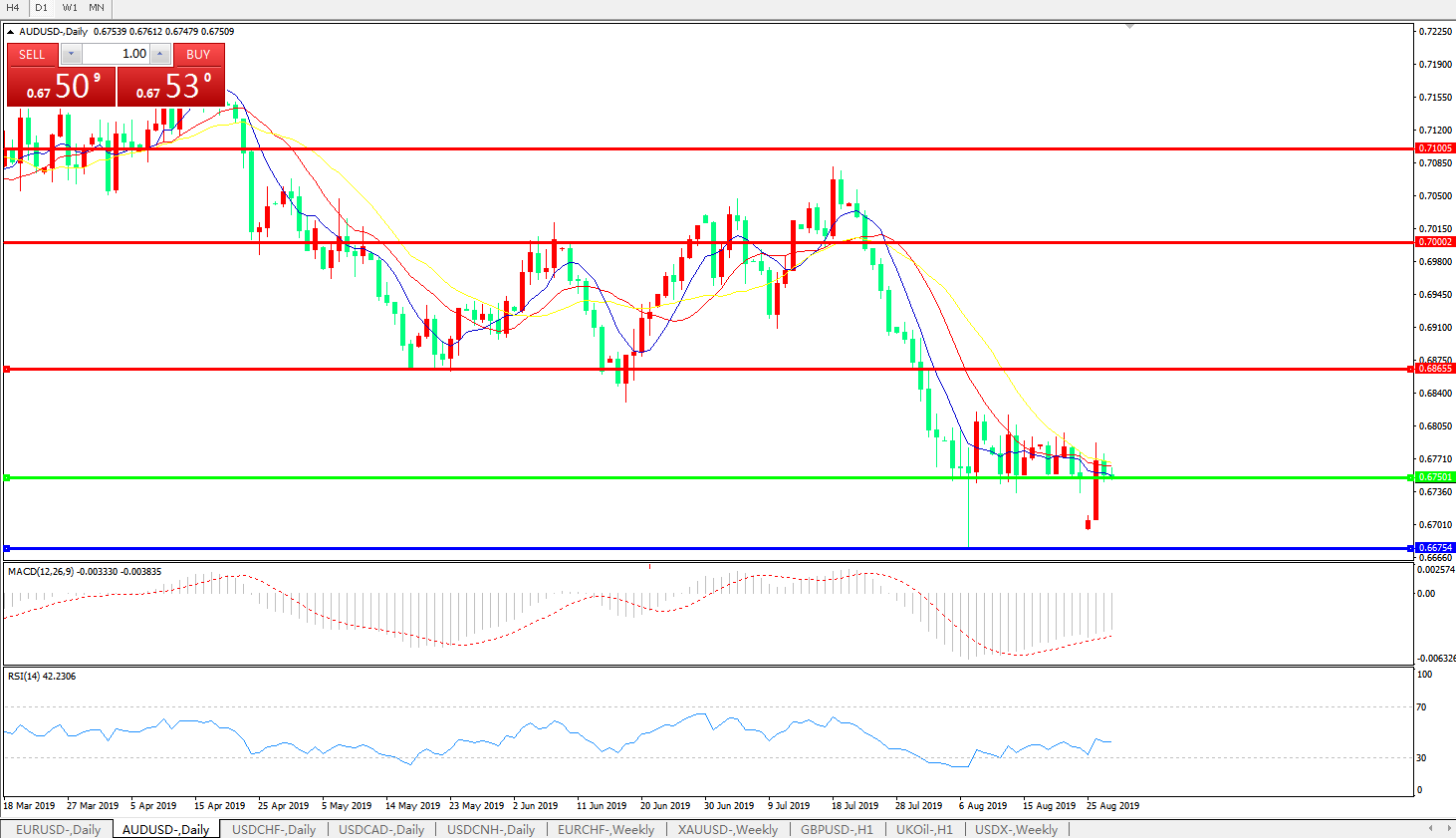 澳元兑美元在周二亚洲时段再度承压下跌,最低触及0.6747,回吐了周一的反弹涨幅,原因在于全球贸易风波仍在持续发酵,令依赖出口的澳洲雪上加霜。日内亚太地区新兴市场货币的集体承压也拖累了欧元的走势;在此状况下,澳洲联储助理主席德贝尔日内也进一步释放了鸽派言辞,称在全球经济下行风险严峻的背景下,澳洲联储已经做好了“随时采取进一步行动”的准备,这让更多投资者押注澳洲联储下周会议可能再度降息;而在低位横盘了近一个月之后,澳元兑美元的中长期走势趋势指标仍指向下行,因此下周会议可能是个变盘节点,在眼下贸易恐慌依旧而美元指数却仍相对坚挺的背景下,提前押注看空的交易会在本周起就对澳元进一步施压