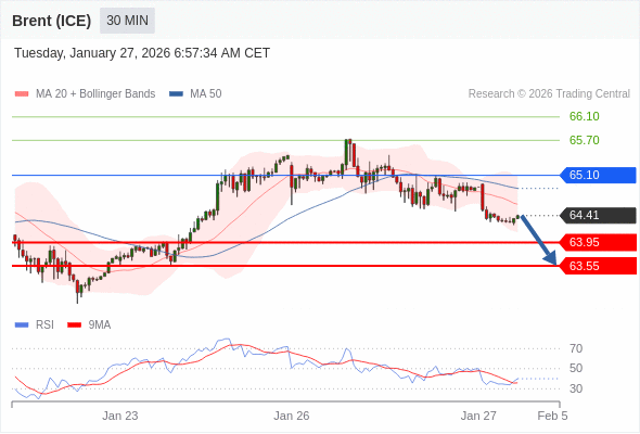 在 65.10 之下,看跌,目标价位为 63.95 ,然后为 63.55 。