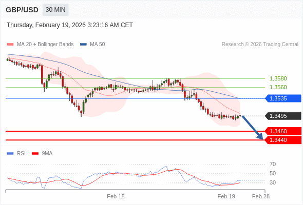 在 1.3535 之下,看跌,目标价位为 1.3460 ,然后为 1.3440 。