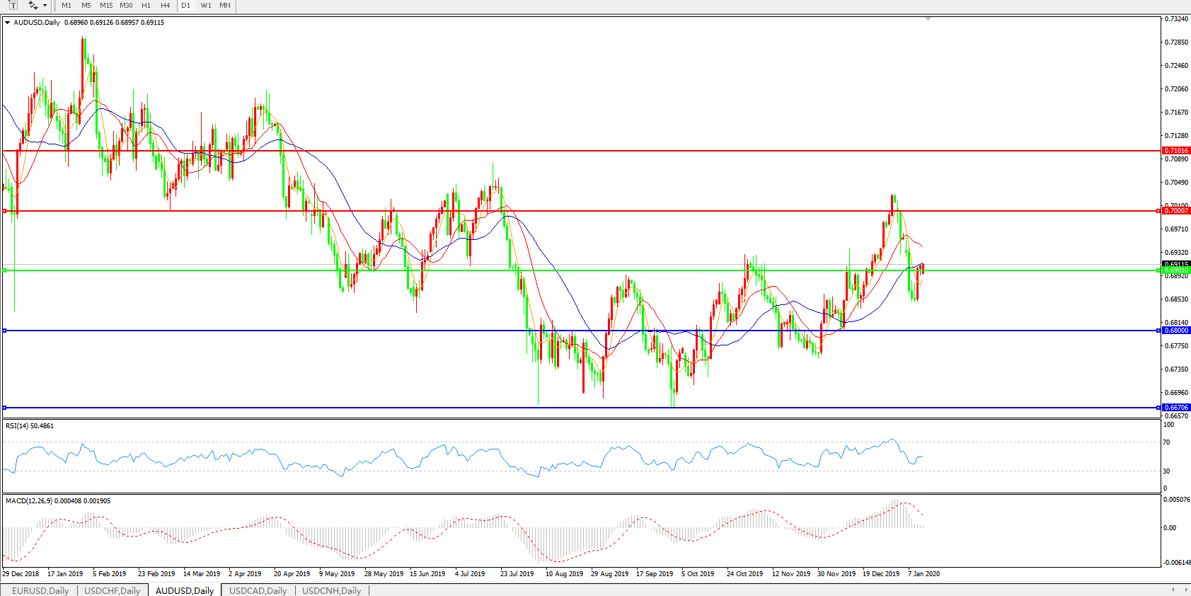 备选策略:0.6900上方看涨,目标0.7000、0.7100
