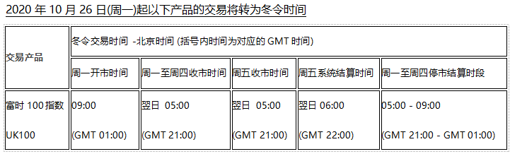 因应欧洲市场将于2020年10月26日(周一)及北美市场将于2020年11月2日(周一)开始分别转入冬令时时间, 以下欧美市场各产品交易时间将调整为冬令时交易时间,敬请阁下留意知悉!