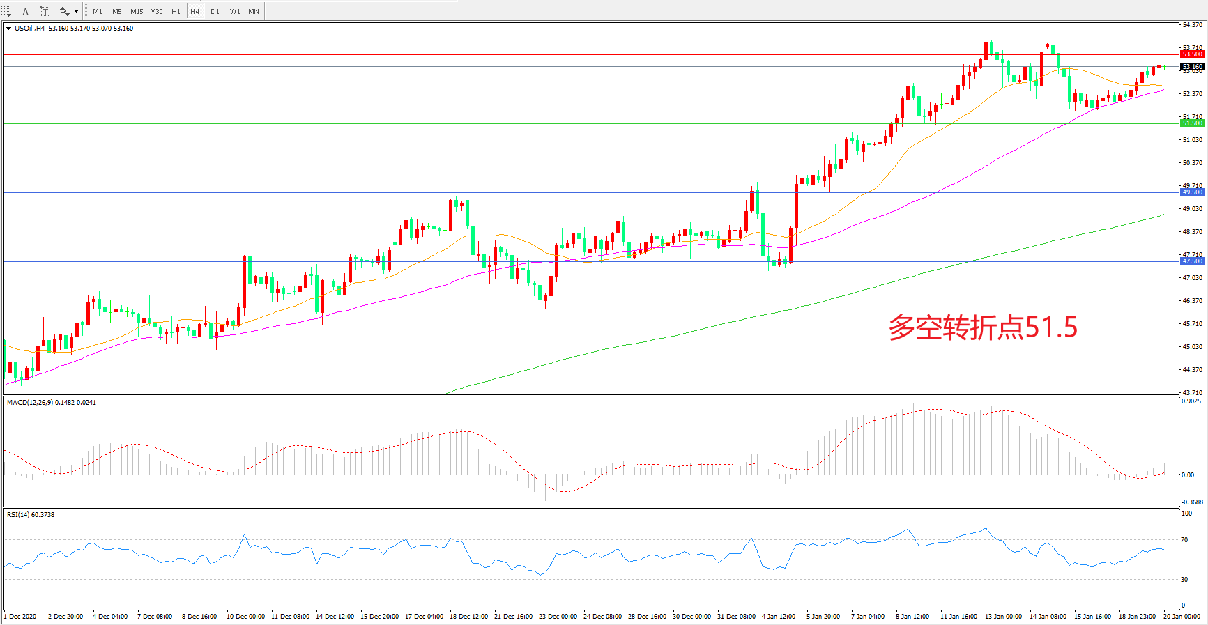 交易策略:在51.50之上看涨,目标53.50 57.00