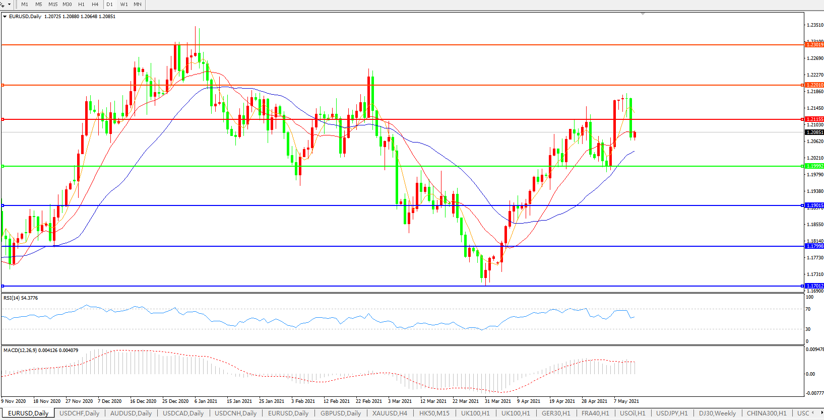 欧元兑美元EURUSD   日线图: