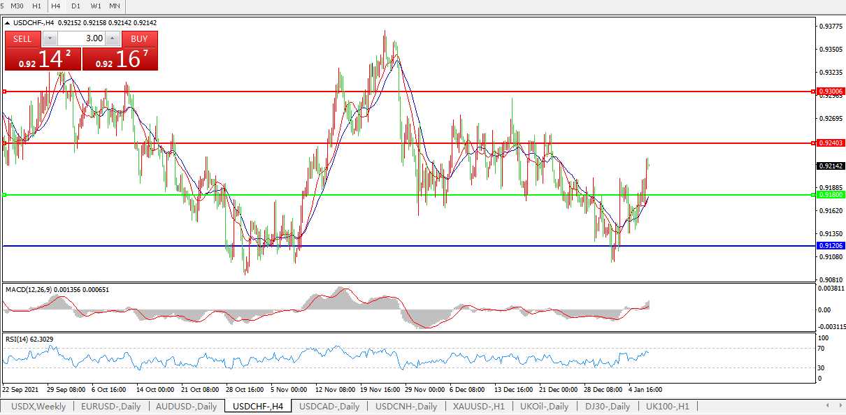 交易策略:0.9180上方看涨,目标0.9270、0.9370