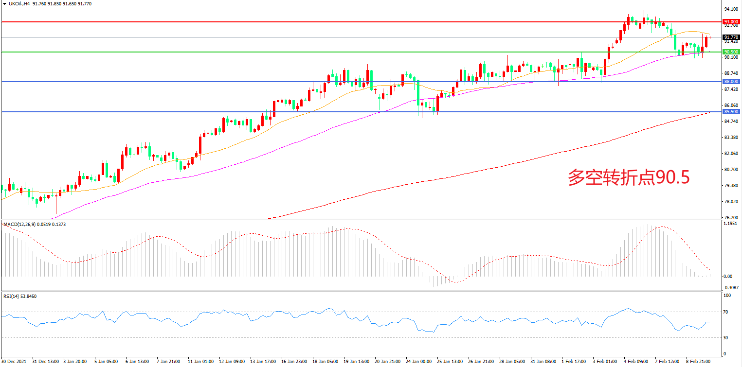 交易策略:在90.50之上看涨,目标93.00 96.00