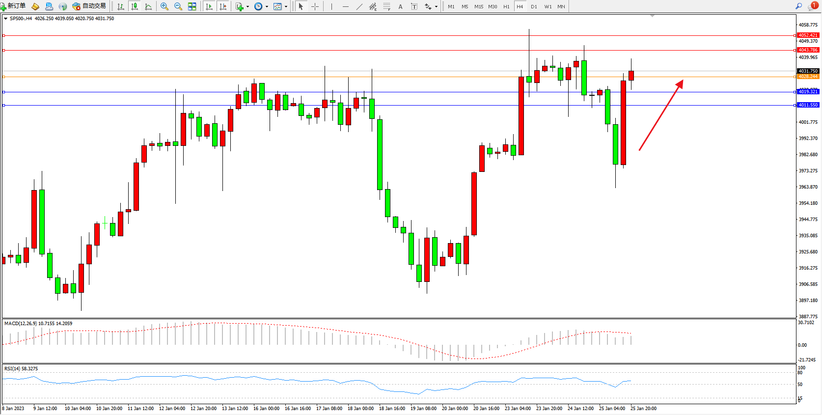 标普SP500——4小时K线图显示: