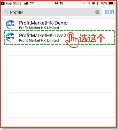 3.在搜索框输入,ProfitMarketHK-Live2服务器: